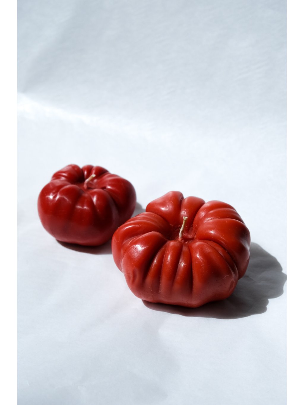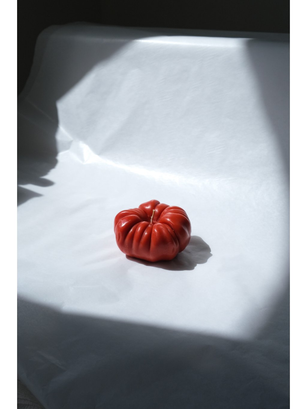 Svíčka ze série Farmers market Tomato big ve tvaru velkého masitého rajčete vyrobená v Jižních Čechách z čistého včelího vosku. Ideální středobod vašeho jídelního stolu nebo promyšlený dárek pro milovníky přírody.